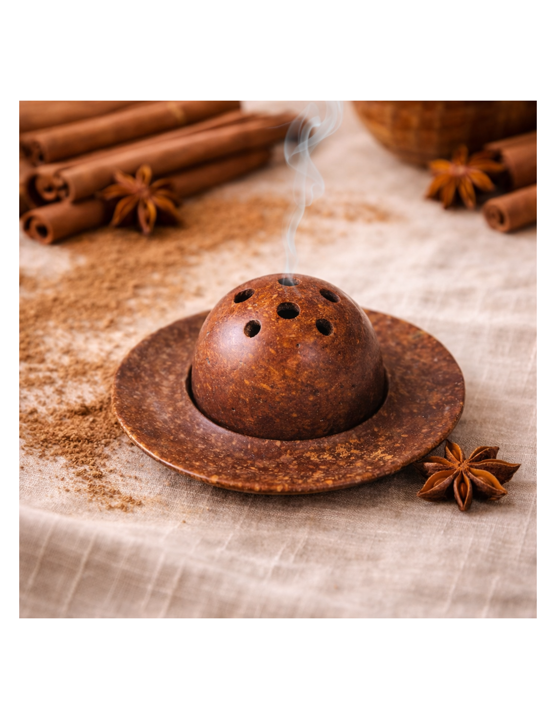 Este tradicional porta incienso de esteatita está elaborado artesanalmente en Auroville, India, una ciudad reconocida por su artesanía y prácticas éticas. Su diseño versátil admite varillas y conos de incienso de diversos diámetros, ofreciendo practicidad y atractivo estético. Cada pieza, única en su textura y variaciones naturales, aporta un toque auténtico y zen a su hogar. Ideal para crear un ambiente relajante y refinado.