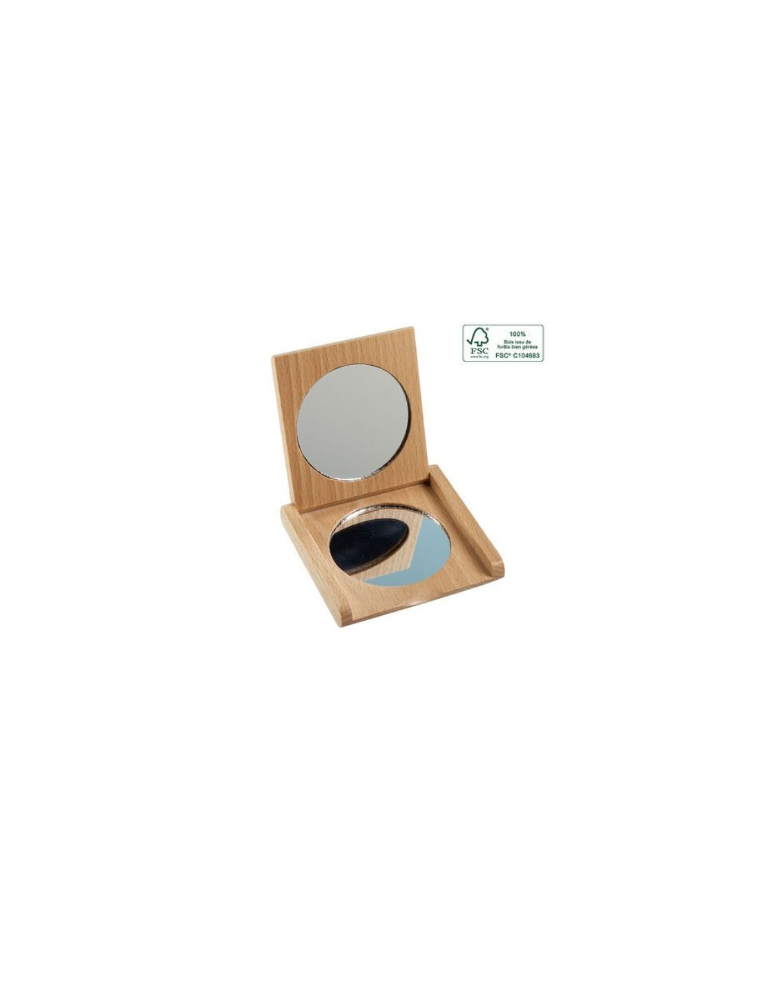 Un espejo de bolsillo que te acompañará a todas partes. Incluye dos espejos de 5 cm de diámetro. Fabricado en una pequeña fábrica europea con métodos tradicionales, es un accesorio resistente y duradero.